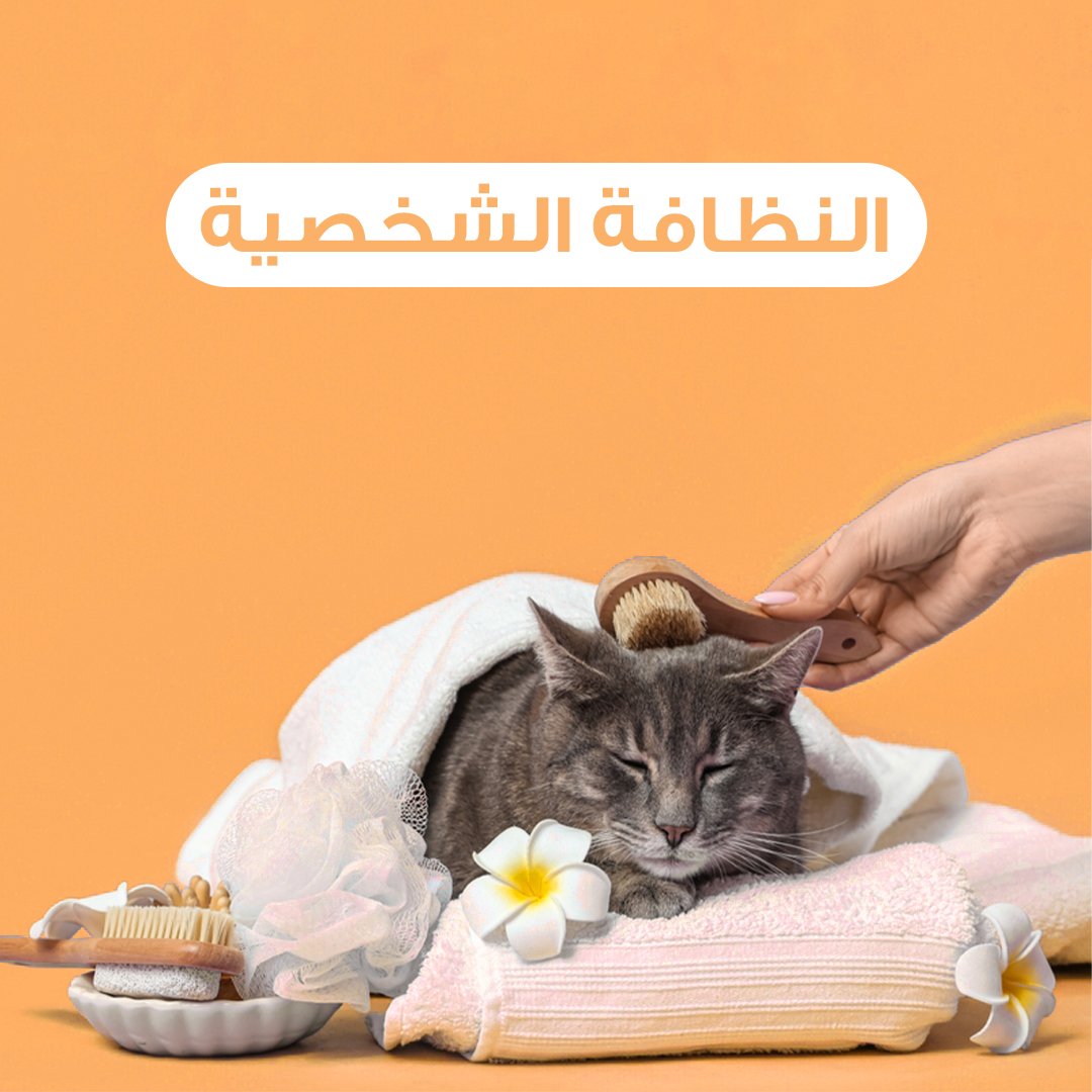 - منتجات النظافة والعناية الشخصية: تشمل الشامبوهات الآمنة، الفُرش ، والمناشف الخاصة لتنظيف القطة والحفاظ على صحتها .